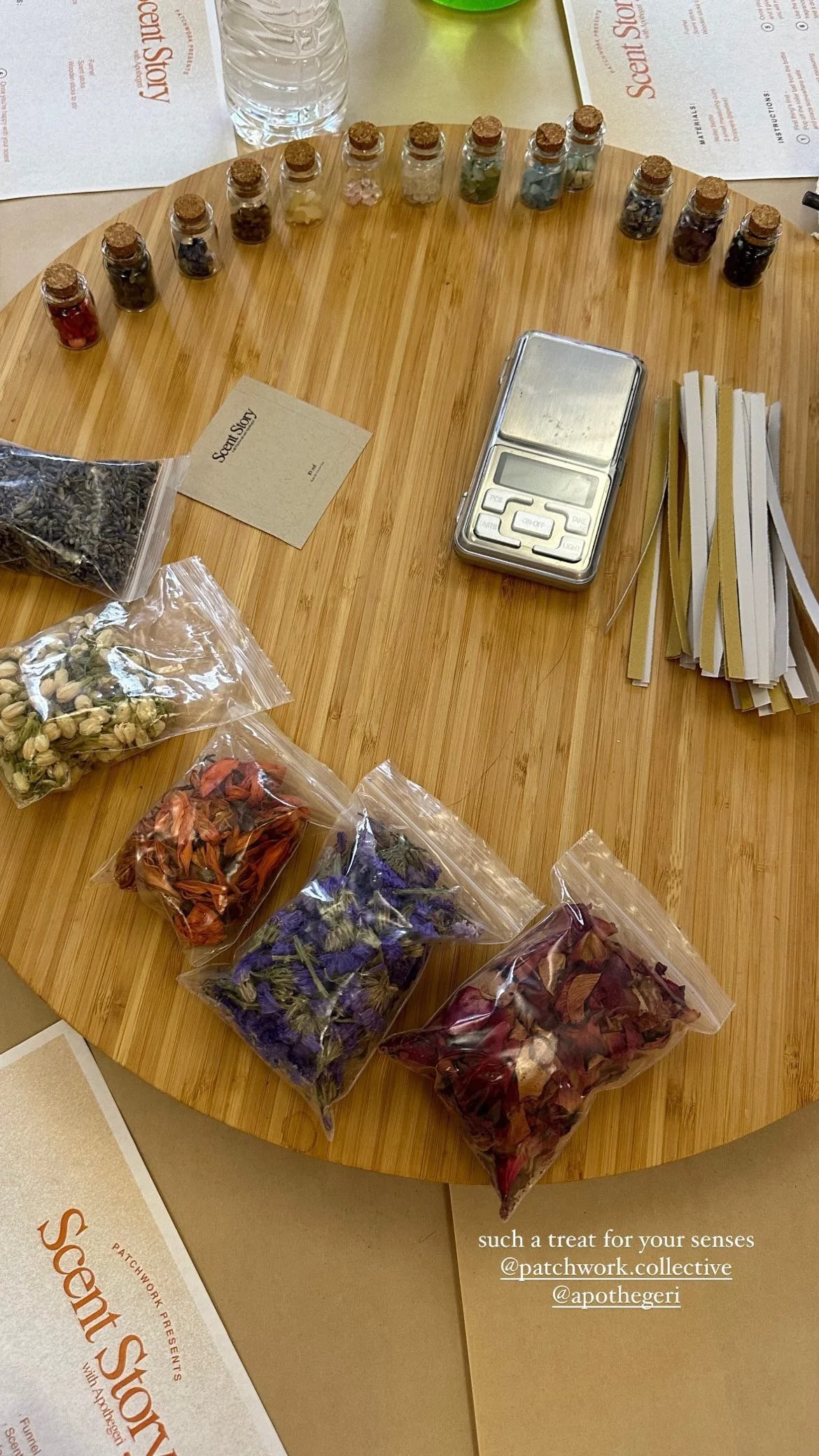 In this interactive workshop, Geri will walk us through the art of composing scent stories. As we blend different aromas, we aim to create a scent that mirrors your ideal life and the feelings that bring us the most sense of ease (or whatever feeling you desire to feel!)
